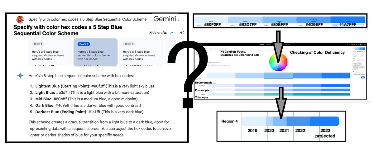 In this writing, I explore Gemini, Google’s AI chatbot, for sequential data color scheme suggestions. Google Gemini is a generative AI…