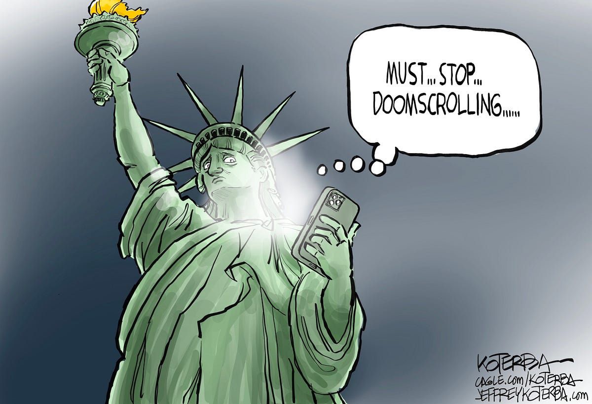Just this morning I uninstalled two apps and unsubscribed from updates from news organizations because I realized I've been spending way too much time on my phone. When Threads decided my critical comment on an Amazon ad necessitated shutting me down from even posting for a week, it prompted me to look in the mirror and realize the doom scrolling was really bad for me.