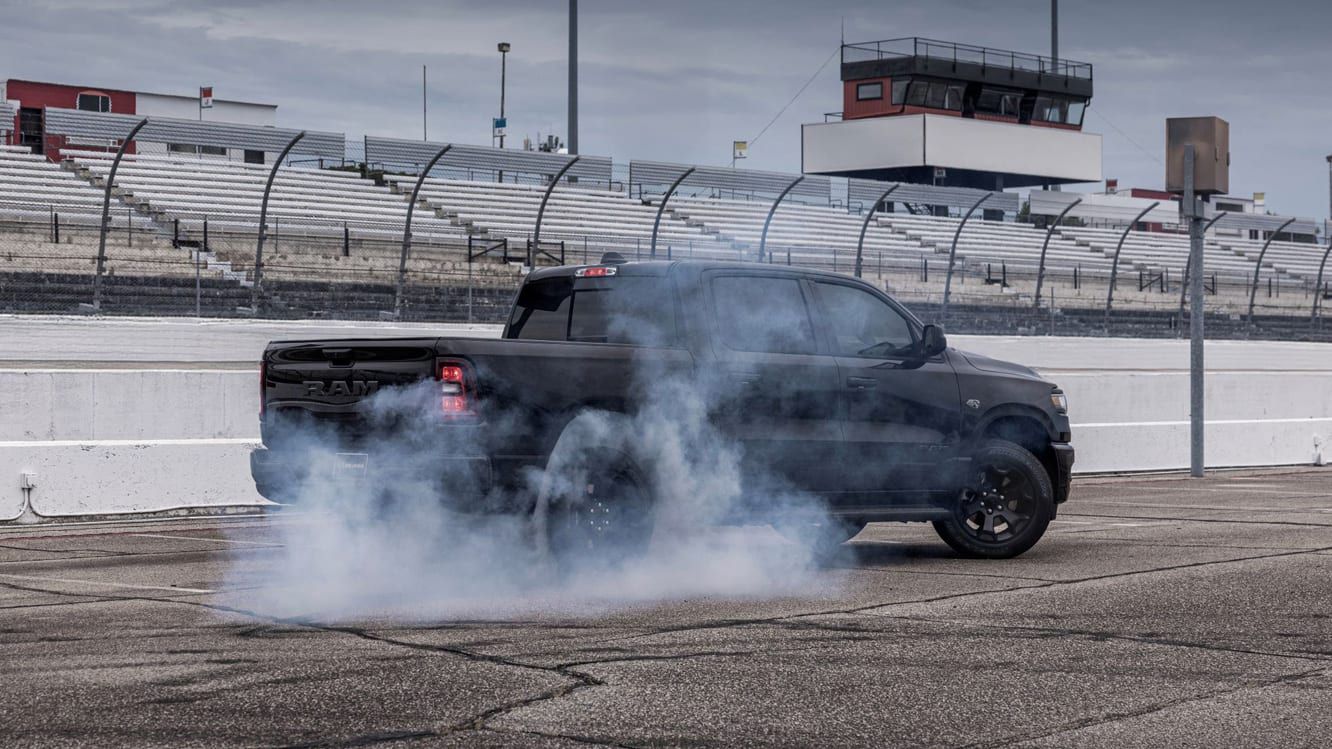 CEO Tim Kuniskis apologizes for discontinuing the Hemi V-8—with doughnuts, drifts, and a NASCAR lap.