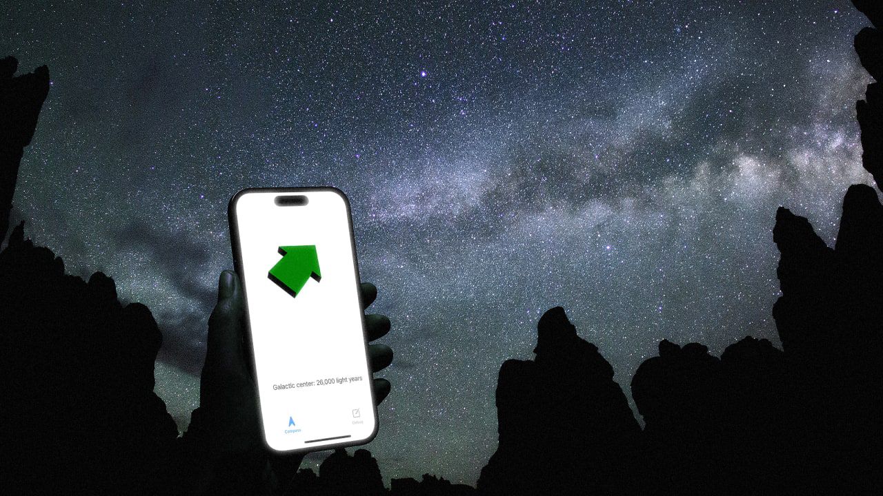 The humble Galactic Compass app reminds us of our place in the universe: a simple green arrow that points to the center of the galaxy.